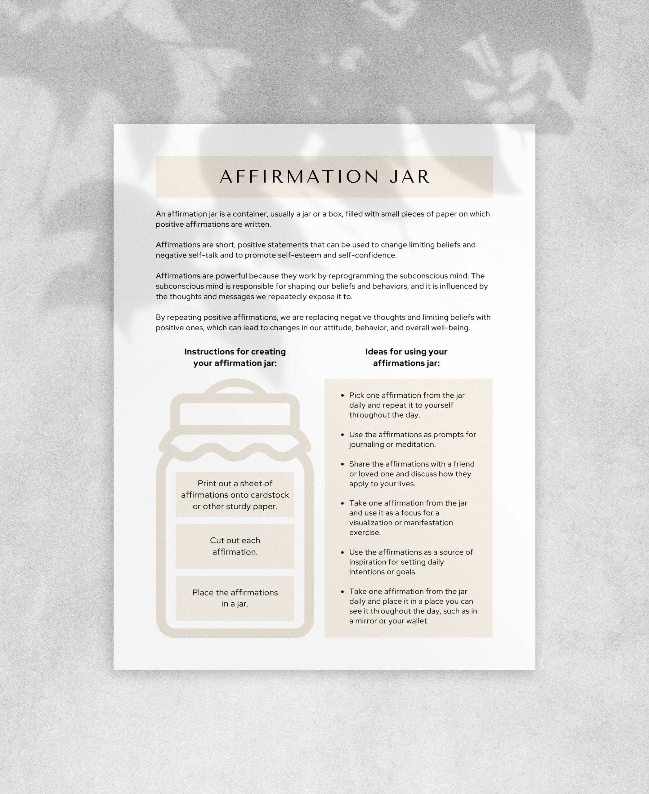 An Affirmation Jar is a fun and effective manner to domesticate a fantastic mind-set and boost your self assurance. By writing empowering affirmations on small slips of paper and putting them in a jar, you create a daily ritual of positivity. Each day, draw a chunk of paper from the jar, and allow the affirmation encourage and motivate you.